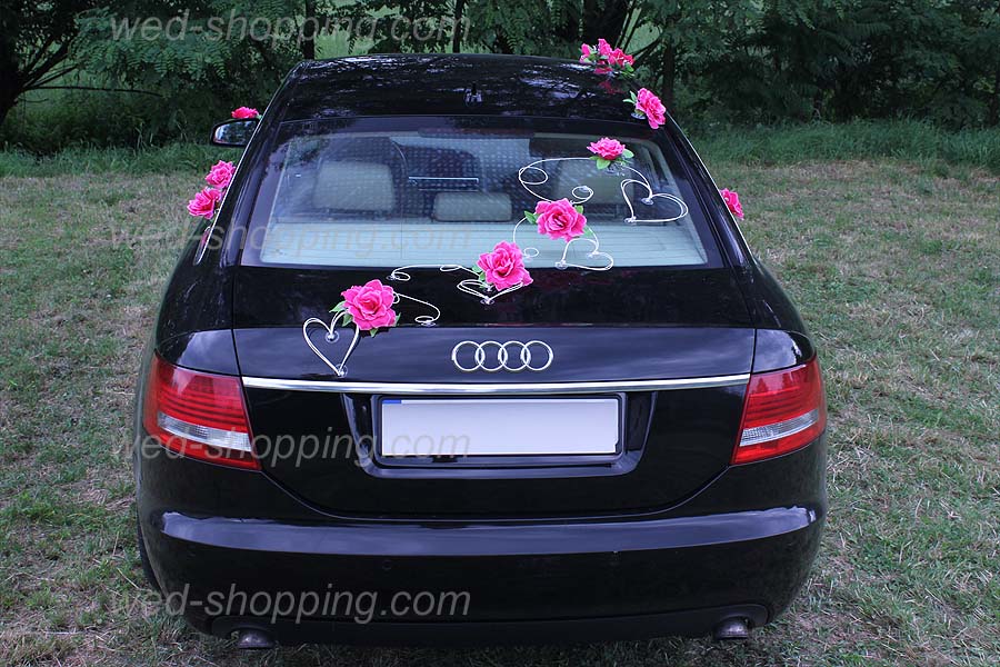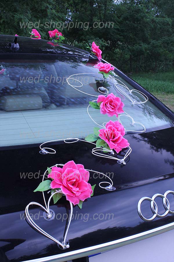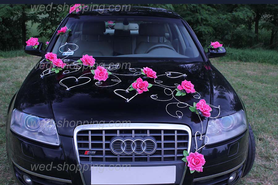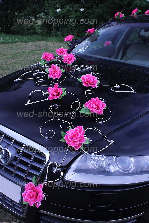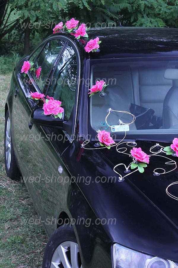 Decoratie bestaat uit: 24 ontwikkelde landen nam knoppen en bladeren in (aan de voorkant, achterkant en zijkanten van de auto) 12 rotan twijgen afgerond harten. Decoratie in de foto is slechts een voorstel en mag vrij worden gelegd. Decoratie wordt op zuignappen die veilig zijn voor de lak zijn gemonteerd. Hoge kwaliteit. Gemaakt in de EU. Levering in circa 10 werkdagen. Vraag om een snellere levering. Bruidsauto versieren roze rozen en hart