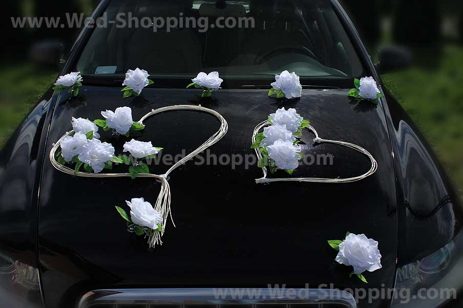 Rotan hart en witte rozen Twee harten op de voorzijde 4 harten op de zijkant van de auto Twee harten op de achterruit Decoratie veilig voor autolak Hoge kwaliteit. Gemaakt in de EU. Levering in circa 10 werkdagen. Vraag om een snellere levering. Bruidsauto versiering witte rozen