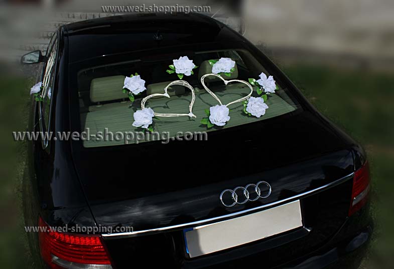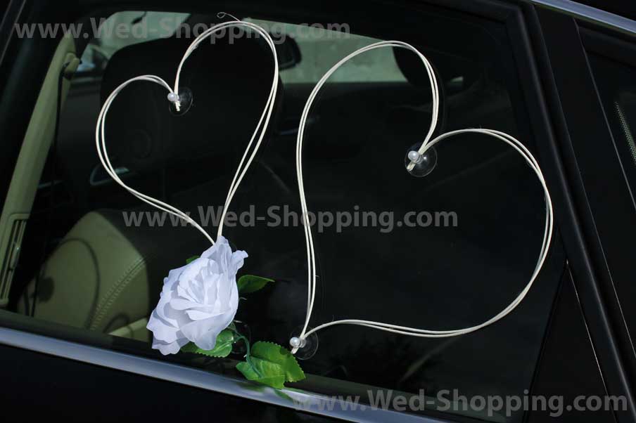 Rotan hart en witte rozen Twee harten op de voorzijde 4 harten op de zijkant van de auto Twee harten op de achterruit Decoratie veilig voor autolak Hoge kwaliteit. Gemaakt in de EU. Levering in circa 10 werkdagen. Vraag om een snellere levering.