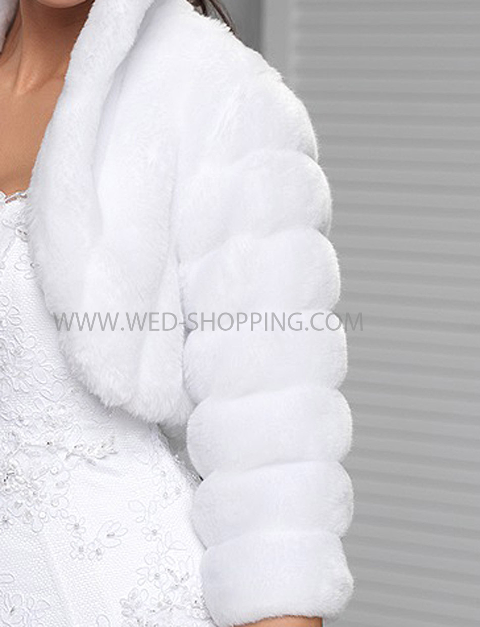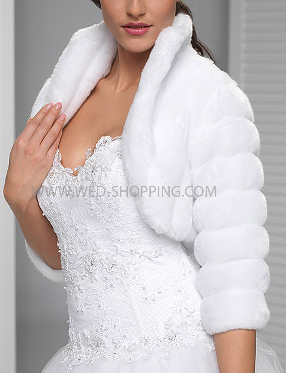 Bontbolero van mooi zacht kunstnerts Past mooi bij een bruidsjurk of avondjurk. Uitstekende pasvorm 2/3 mouw opstaand kraagje leverbaar in wit en ivoor, zwart S-7XL (Grote Maat) Bruidsbolero van bont (vos) Hoge kwaliteit. Gemaakt in de EU. Leveringstijd is circa 10 werkdagen. Vraag om een snellere levering.
