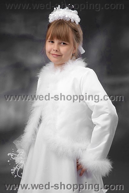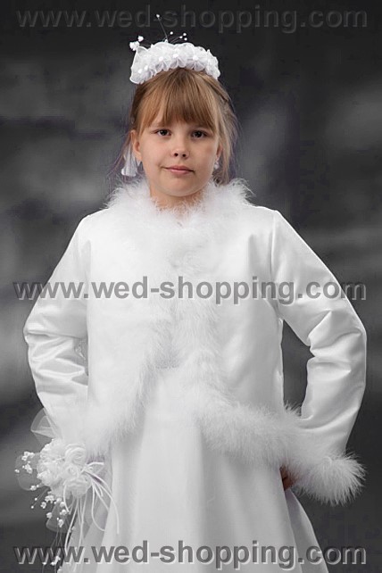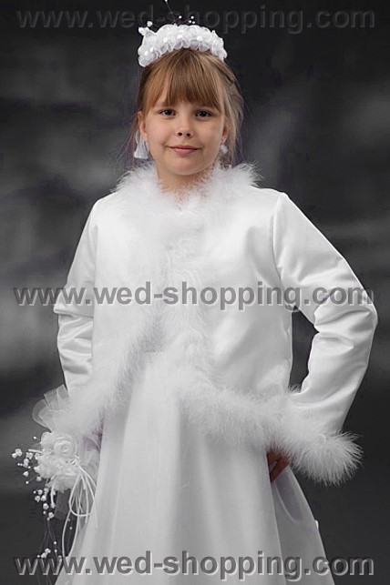 Varm jasje van gevoerd satijn met marabou (voor Communie of bruiloft) Lange mouwen Marabou veren Leverbaar in wit Maten: S,M (8-11 jaar) S - 128-134 cm growth M - 140-146 cm growth Hoge kwaliteit. Gemaakt in de EU. Levering in circa 10 werkdagen. Vraag om een snellere levering.
