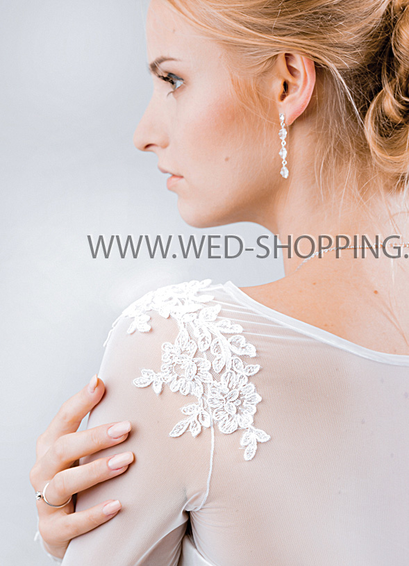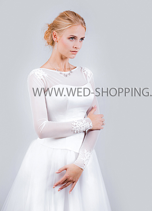 Kant elementen op de bolero mouwen van tulle.