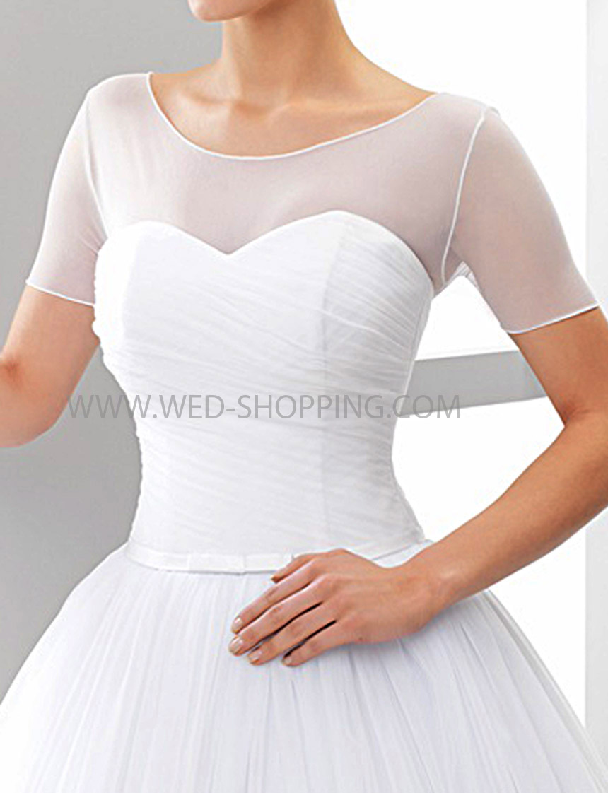 Trouw jasje van stretch tule Korte mouwen Leverbaar in wit en ivoor S/M,L/XL,XXL/XXXL,4XL/5XL,6XL/7XL (Grote Mat) Hoge kwaliteit. Gemaakt in de EU. Levering in circa 10 werkdagen. Vraag om een snellere levering.