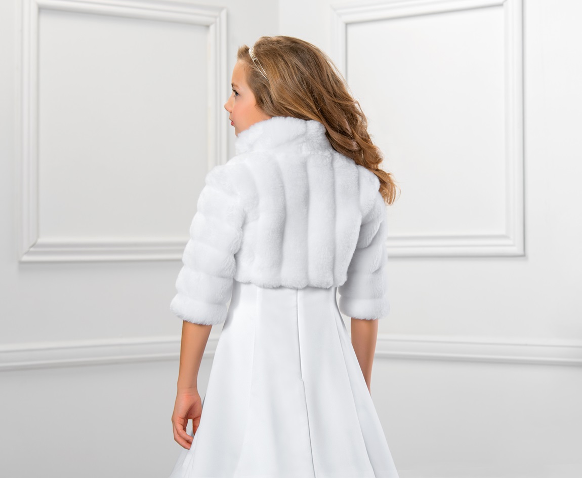 Een prachtig chique bolero van imitatiebont voor meisjes voor communiejurk och bruidsmeisjesjurk
