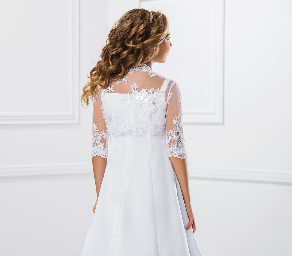 Een prachtig chique bolero voor kmeisjes voor communiejurk och bruidsmeisjesjurk