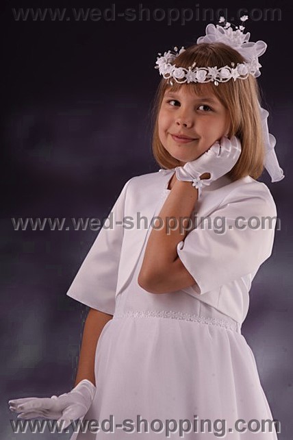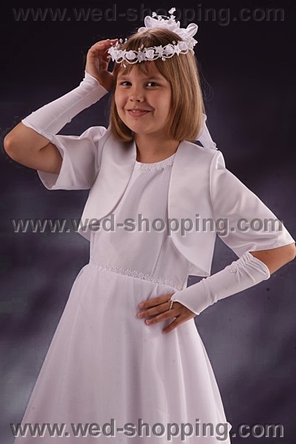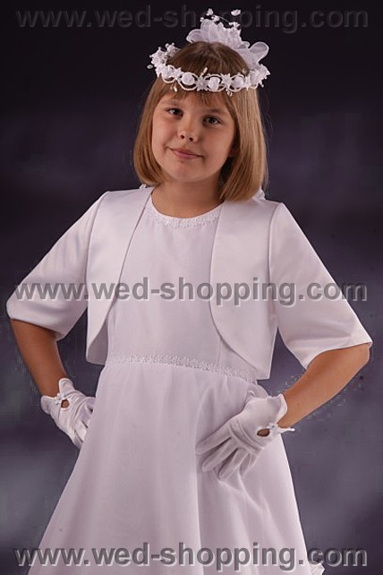 Satijnen bolero met korte mouwen in de kleur ivoor, wit. Heerlijk om te dragen bij een bruidsmeisjes - of communiejurkje als het iets frisser is. Het jasje kan na het feest prima door gedragen worden b.v. in combinatie met een spijkerbroek. Kleur: wit, ivoor Mat: S,M S - 128-134 cm growth M - 140-146 cm growth Hoge kwaliteit. Gemaakt in de EU. Levering in circa 10 werkdagen. Vraag om een snellere levering.