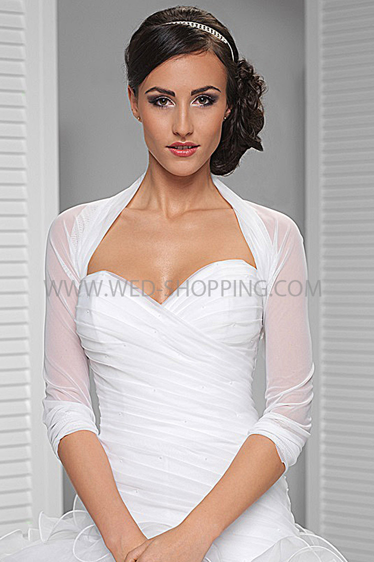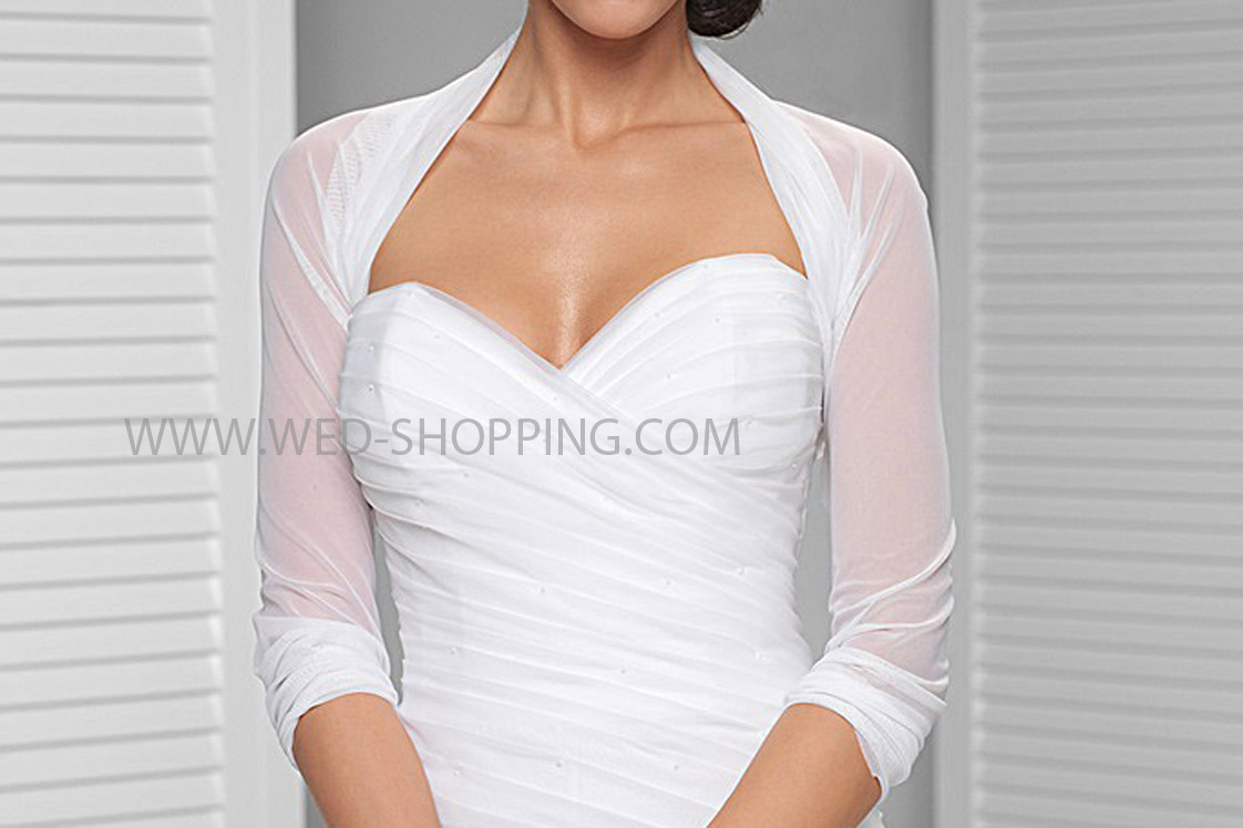 Trouw jasje van stretch tule Lange mouwen Leverbaar in wit en ivoor S/M,L/XL,XXL/XXXL,4XL/5XL,6XL/7XL (Grote Mat) Hoge kwaliteit. Gemaakt in de EU. Levering in circa 10 werkdagen. Vraag om een snellere levering.