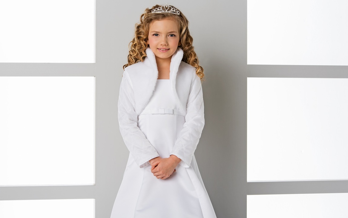 Een prachtig chique bolero van imitatiebont voor meisjes voor communiejurk och bruidsmeisjesjurk