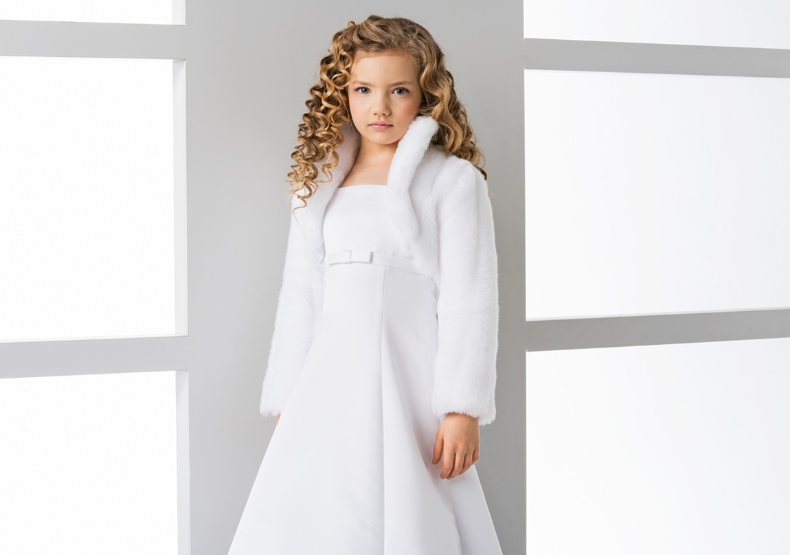 Een prachtig chique bolero van imitatiebont voor meisjes voor communie of bruiloft