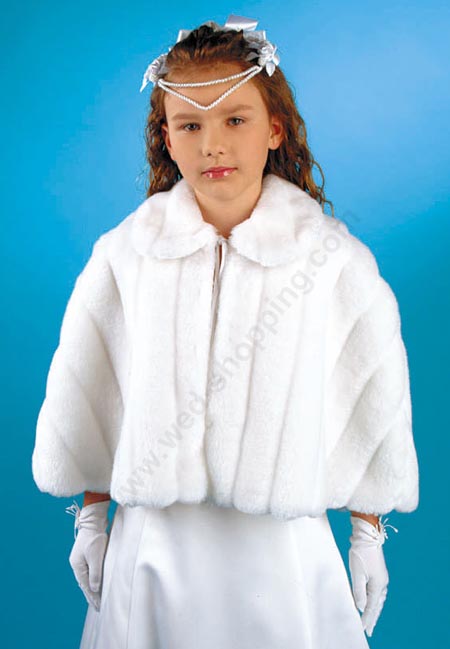 Voor communie of bruiloft Een maat: 8-11 jaar Kleur: wit Materiaal : 100% Polyester Hoge kwaliteit. Gemaakt in de EU. Leveringstijd is circa 10 werkdagen. Vraag om een snellere levering. Bontcape voor communie of bruiloft
