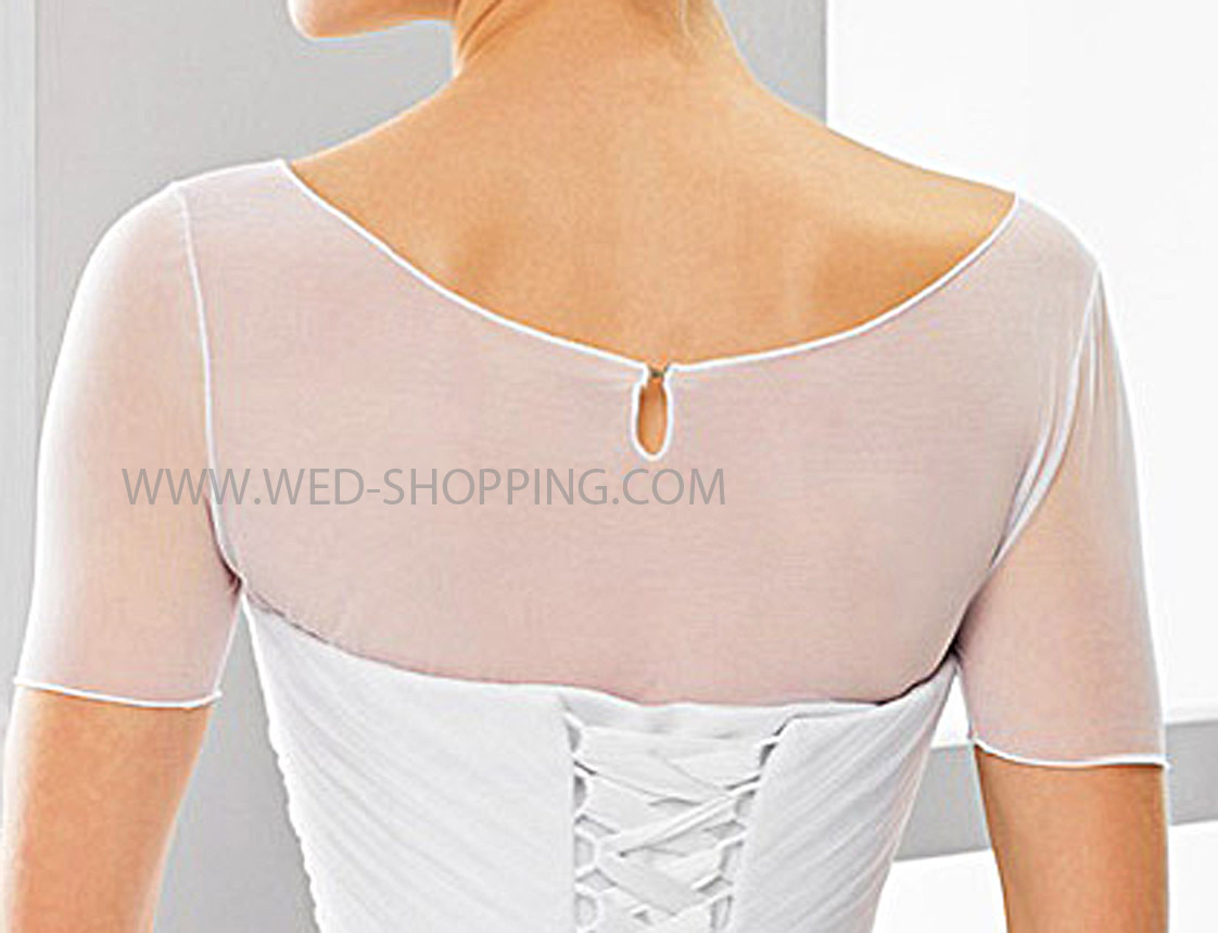 Bruids jasje van stretch tule V-decollete Korte mouwen Leverbaar in wit en ivoor S/M,L/XL,XXL/XXXL,4XL/5XL,6XL/7XL (Grote Mat) Hoge kwaliteit. Gemaakt in de EU. Leveringstijd is circa 10 werkdagen. Vraag om een snellere levering.