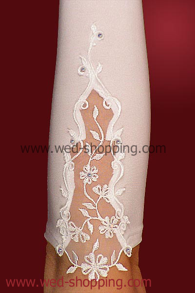 Bruidshandschoenen van de ornamenten. Verkrijgbaar in wit of ivoor een maat. Hoge kwaliteit. Gemaakt in de EU. Leveringstijd is circa 10 werkdagen. Vraag om een snellere levering.