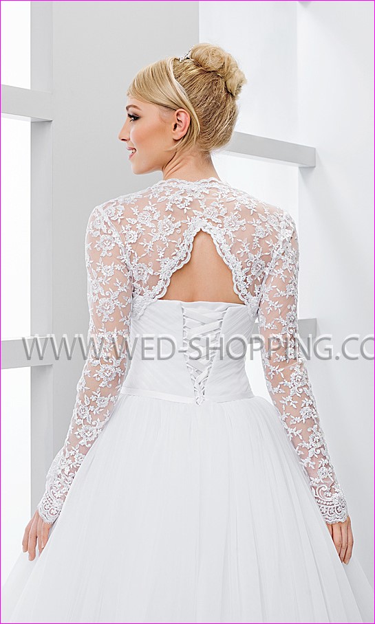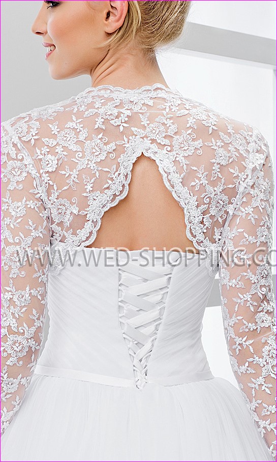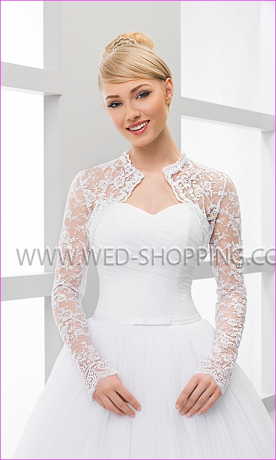 Deze elegante bruiloft bolero heeft sleutelgat terug Verkrijgbaar in wit en ivoor.