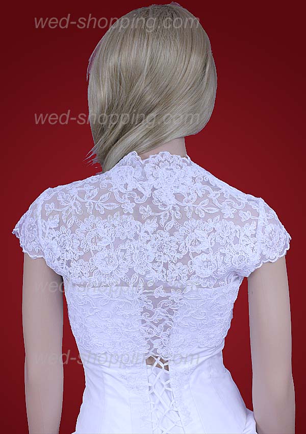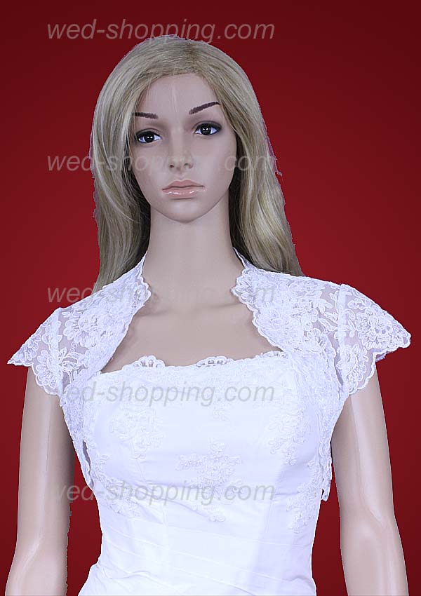 Subtiele trouwbolero van kant Korte Mouwen Kleur: wit, ivoor Mat: S-7XL (Grote Maat) Hoge kwaliteit. Gemaakt in de EU. Leveringstijd is circa 10 werkdagen. Vraag om een snellere levering.