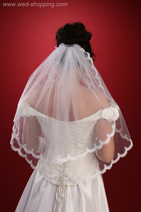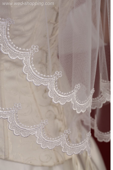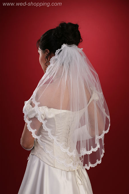 Lange sluier tweelaags met kant Laags: 70/60 cm lang 140 cm breed disponibel in wit en ivoor Hoge kwaliteit. Gemaakt in de EU. Levering in circa 10 werkdagen. Vraag om een snellere levering.