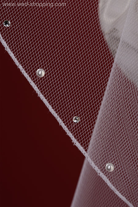 Sluier met stenen en parels bestikt, op kam. Langs de rand versierd met 170 Swarovski kristallen en pareltjes Breedte 140 cm Laags: 80/60 cm lang leverbaar in wit en ivoor Hoge kwaliteit. Gemaakt in de EU. Levering in circa 10 werkdagen. Vraag om een snellere levering.