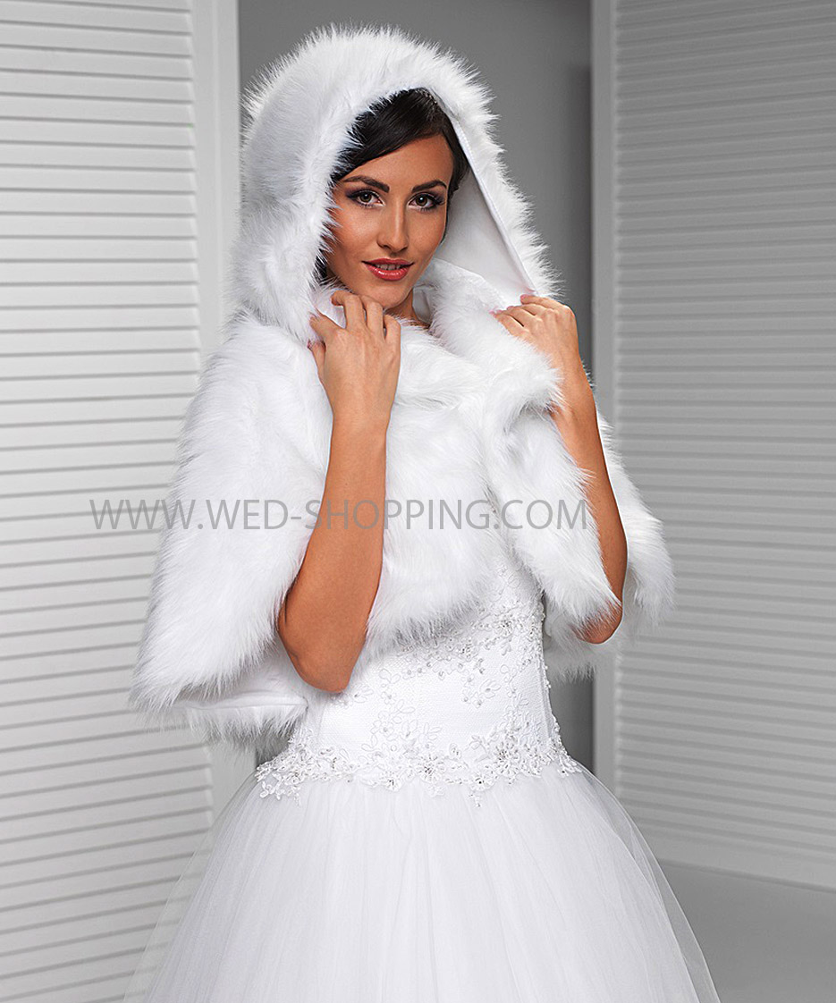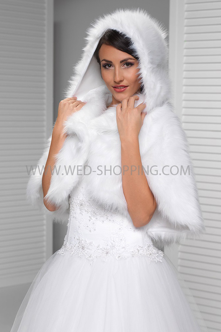 Bruids cape met capuchon. Gemaakt van faux fur - wolf. Een maat. Verkrijgbaar in wit, zwart en ivoor Hoge kwaliteit. Gemaakt in de EU. Leveringstijd is circa 10 werkdagen. Vraag om een snellere levering.