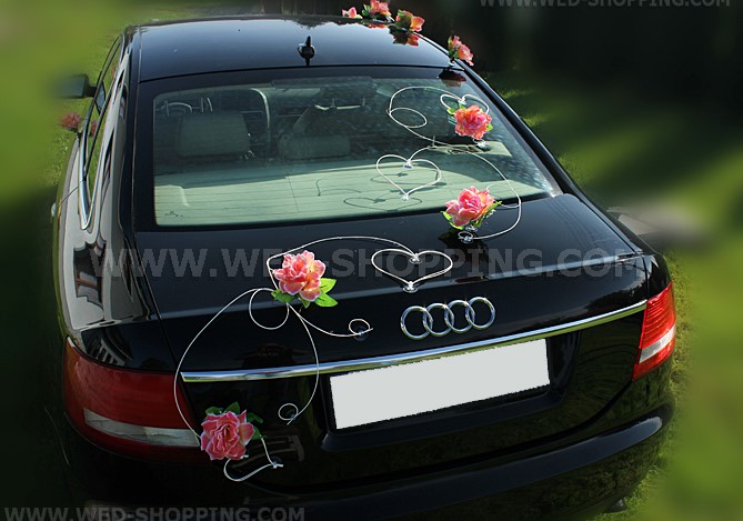 Mooie grote kunstmatige rozen en rotan harten met staarten Hele kit om uw bruiloft limousine te versieren. De kit is zeer eenvoudig te installeren. De kit bestaat uit: - 24 bloemen -12 Harten met de staart Elk onderdeel heeft zijn eigen zuignap Decoratie is veilig voor een auto. Hoge kwaliteit. Gemaakt in de EU. Levering in circa 10 werkdagen. Vraag om een snellere levering. Bruiloft decoratie auto koraal rozen