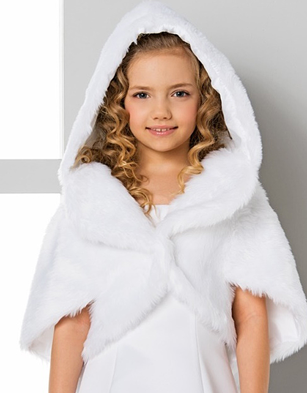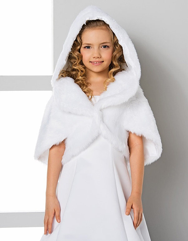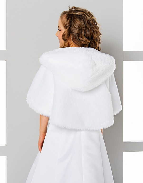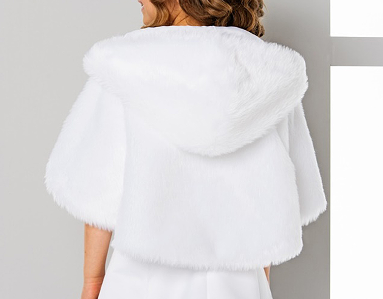 Fausse Fourrure Cape paur la mariee avec capuche Pelerine mariage en faux loup, Couleur: blanc, noir ou ivoire. Taille: universelle - une seule taille Haute Qualité Fabriqué en EU Cape Communion avec capuche fausse fourrure