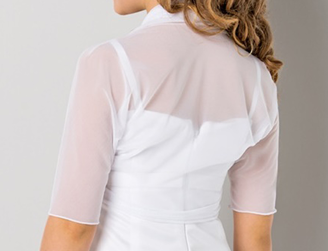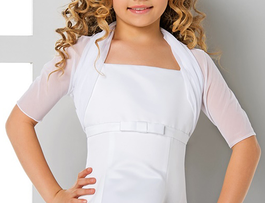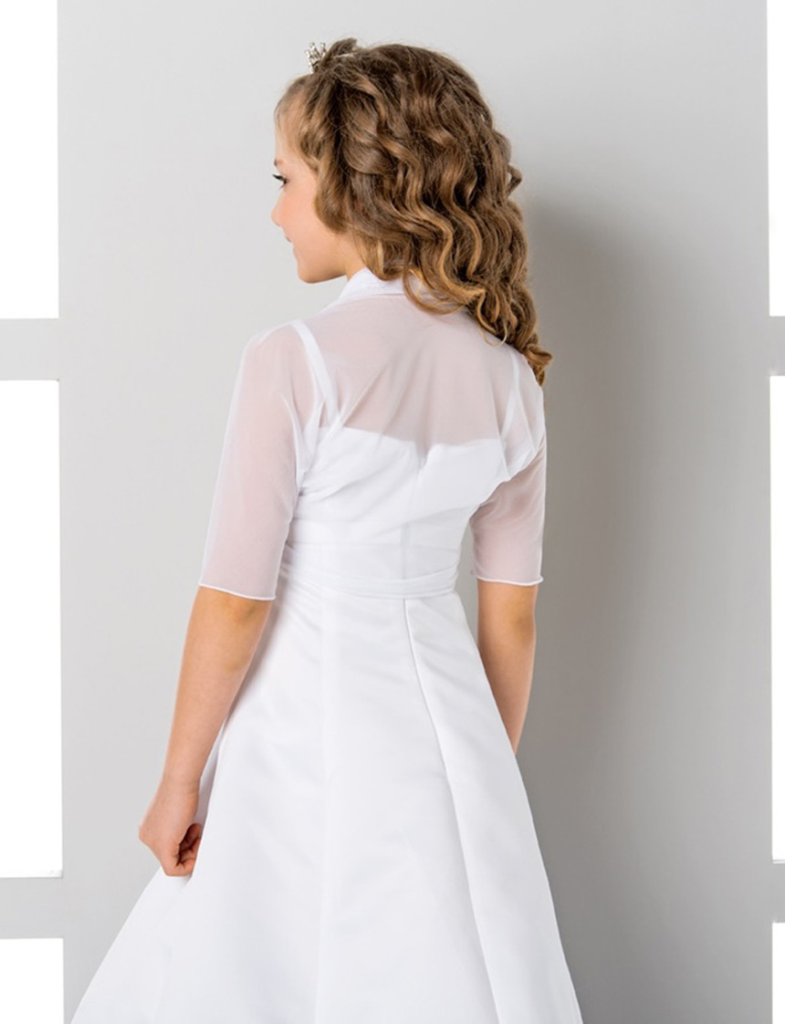 Boléro veste en tulle avec manches courtes Disponible en blanc et ivoire Taille: 128/134/140 et 146/152/158 Haute Qualité Fabriqué en EU