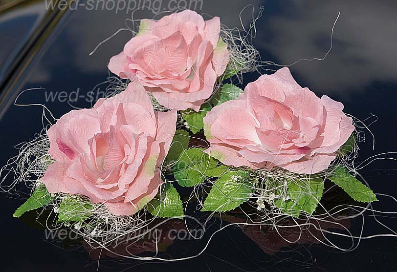 Decoratie bestaat uit: 12 rozen met bladeren 12 takjes van rotan met kralen 4 bogen op een auto deur Decoratie veilig voor autolak Hoge kwaliteit. Gemaakt in de EU. Levering in circa 10 werkdagen. Vraag om een snellere levering. Decoratie voor trouwauto roze rozen