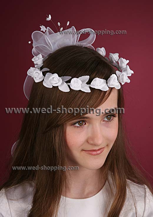 Hoge kwaliteit. Gemaakt in de EU. Leveringstijd is circa 10 werkdagen. Vraag om een snellere levering. Diadeem voor communie met linten en tule