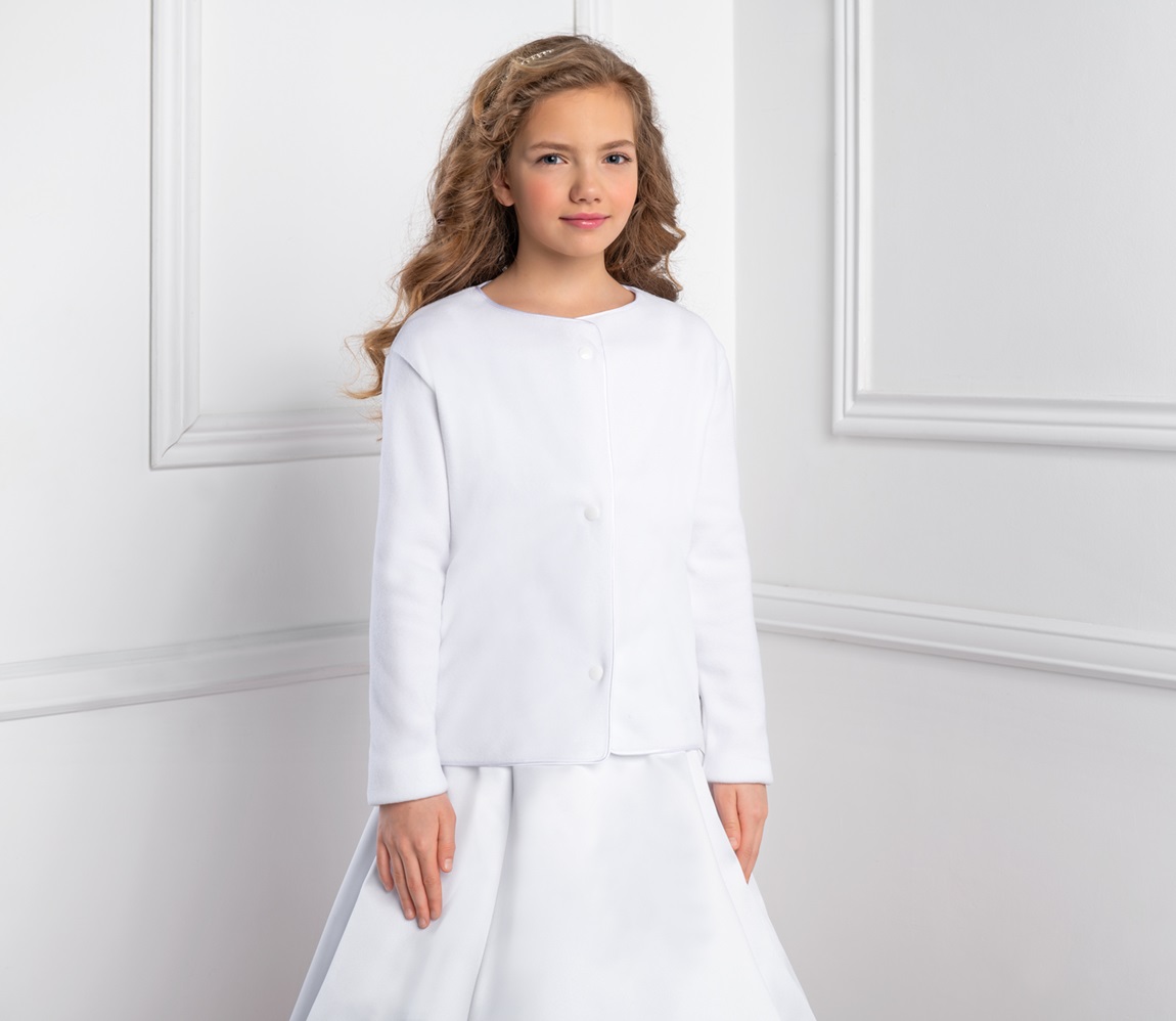 Een prachtig chique jas van fleece voor communie of bruiloft