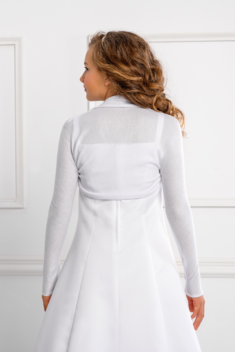 Een prachtig chique gebreid bolero voor meisjes voor communiejurk och bruidsmeisjesjurk