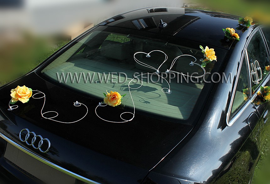Decoratie kit: - Negen boeketten gemaakt van rozen in violet, geel en bordeaux rozen - Acht rotan twijgen - Twee grotere harten voor motorafdekking - Zes kleinere harten voor deuren en achter Zuignappen opgenomen Hoge kwaliteit. Gemaakt in de EU. Levering in circa 10 werkdagen. Vraag om een snellere levering.