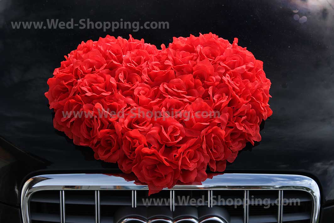 Rood hart gemaakt van kunstmatige rozen. Grootte: ongeveer 57cm Het hart kan worden bevestigd aan de wagen (3 kopjes)