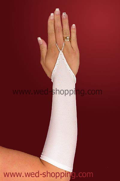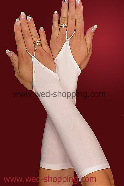Satijn Bruidshandschoenen met pareltjes Gemaakt van glanzend elastisch satijn zonder vingers Kleur: wit, ivoor Hoge kwaliteit. Gemaakt in de EU. Levering in circa 10 werkdagen. Vraag om een snellere levering. Bruidshandschoenen met parels van Swarovski