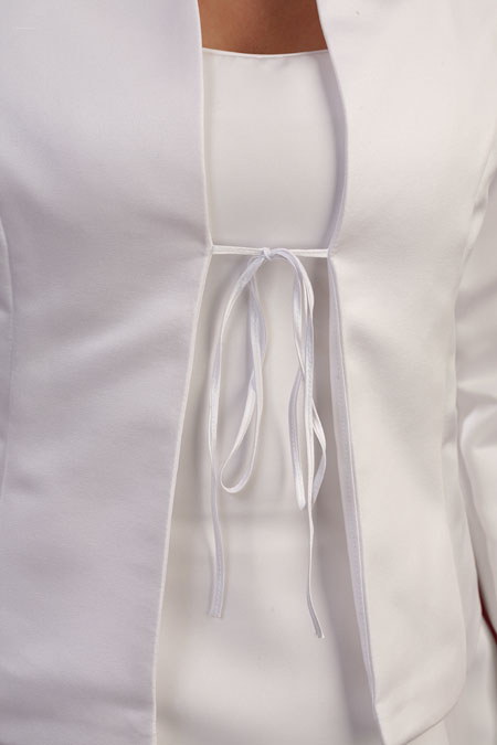 Jasje van gevoerd satijn Lange mouwen Leverbaar in wit en ivoor Hoge kwaliteit. Gemaakt in de EU. Levering in circa 10 werkdagen. Vraag om een snellere levering.