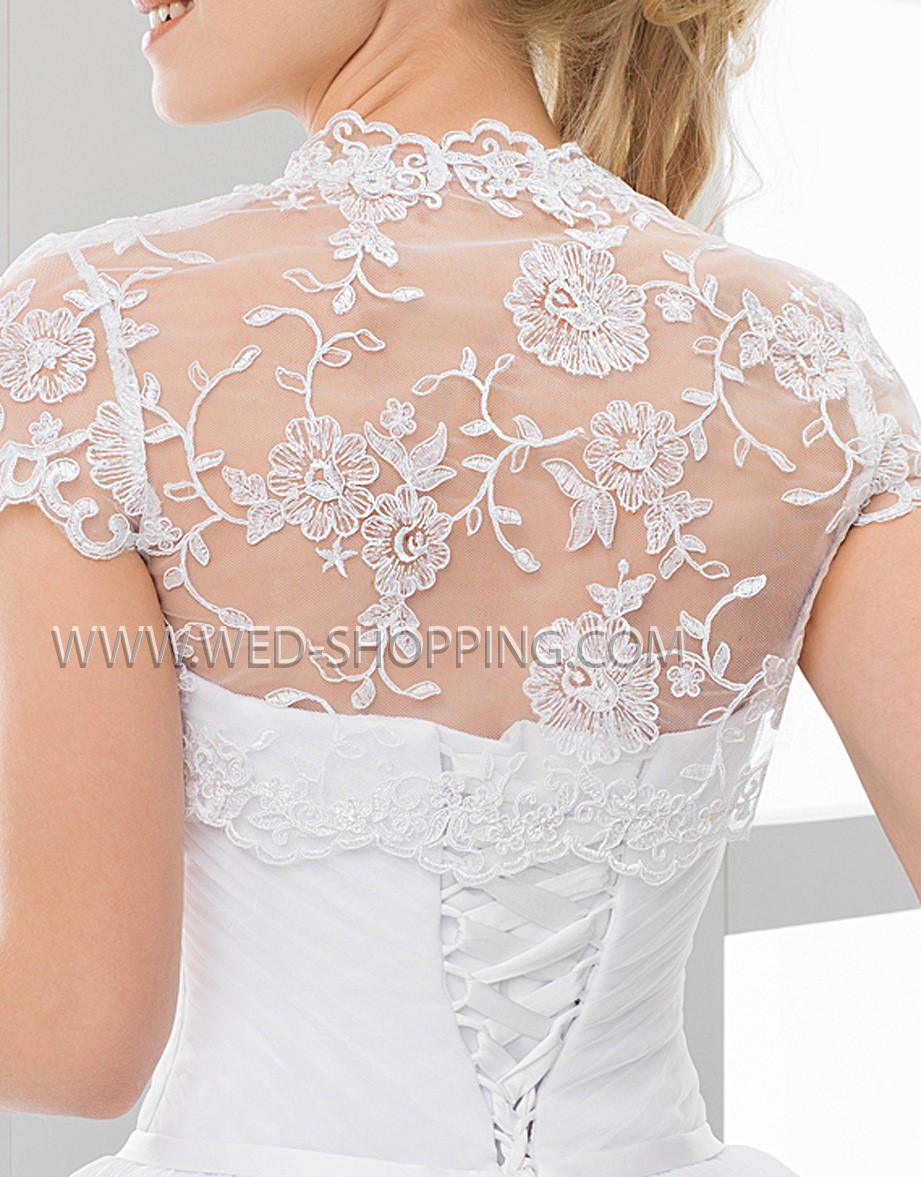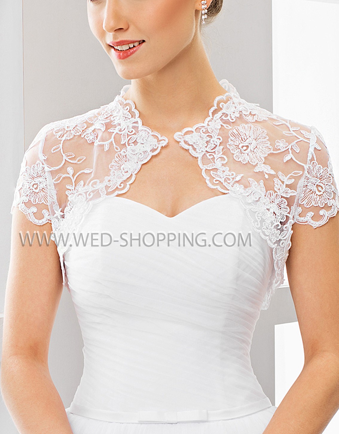 Bruidsbolero van kant Korte Mouwen Kleur: wit, ivoor Mat: S-7XL (Grote Maat) Hoge kwaliteit. Gemaakt in de EU. Leveringstijd is circa 10 werkdagen. Vraag om een snellere levering.