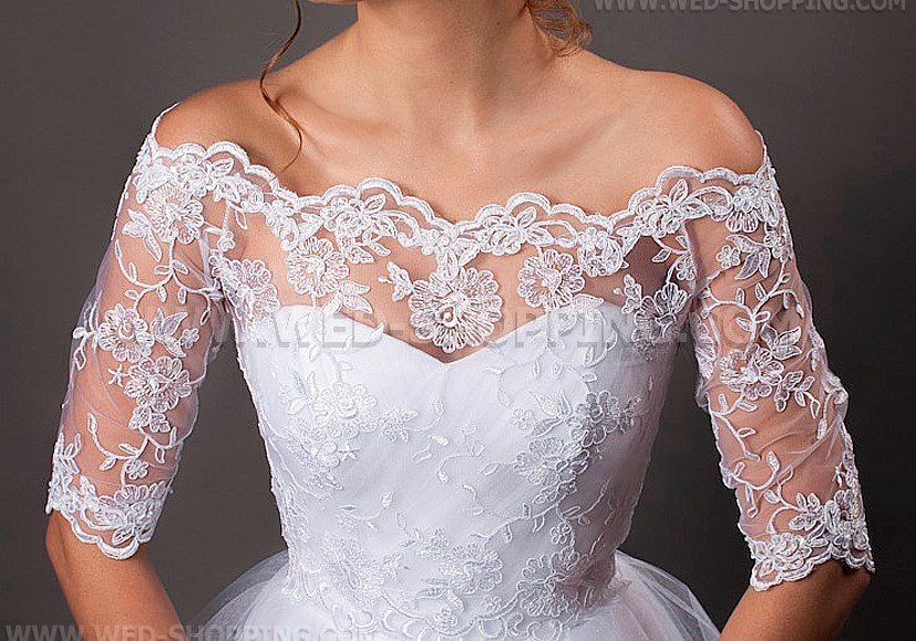 Kanten off shoulder top bolero, met veter of knoopsluiting op de rug. 1/2 Mouwen Kleur: wit, ivoor Mat: S-7XL (Grote Maat) Sizes ( cm): Small Bust round: 80-84 ; Back width: 33,5-34,5 Medium: Bust round: 88; Back width: 35,5 Large: Bust round: 92-96; Back width: 36,5-37,5 XLarge: Bust round: 100-104; Back width: 38,5-41 2XLarge: Bust round: 108-110; Back width: 42-44 3XLarge: Bust round: 112-114; Back width: 45-46,5 Hoge kwaliteit. Gemaakt in de EU. Levering in circa 10 werkdagen. Vraag om een snellere levering.