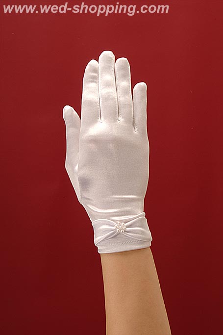 Korte bruidshandschoenen met vingers en manchet manchet met parel knop