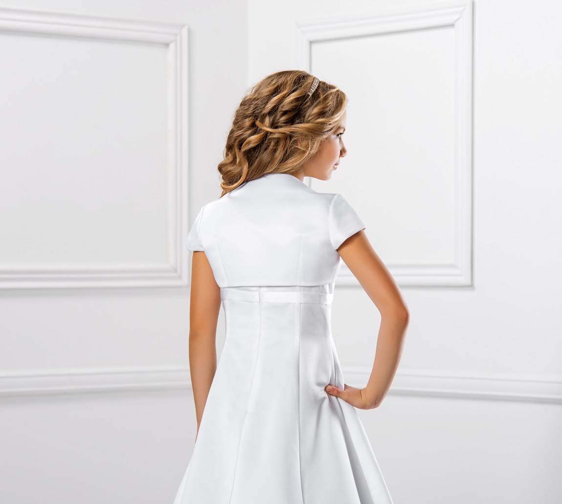 Een prachtig chique bolero van satijn voor bruidsmeisjes.