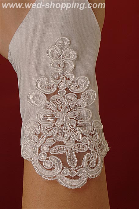 Satijnen vingerloze handschoenen met Kant Gemaakt van glanzend elastisch satijn Kleur: wit en ivoor (ecru, ivory, avorio) Hoge kwaliteit. Gemaakt in de EU. Vraag om een snellere levering.