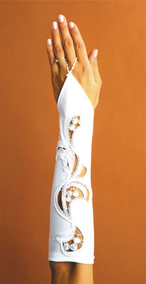 Lange handschoenen van glanzend elastisch satijn lange decoratie tot de elleboog zonder vingers Kleur: wit, ivoor Hoge kwaliteit. Gemaakt in de EU. Vraag om een snellere levering.