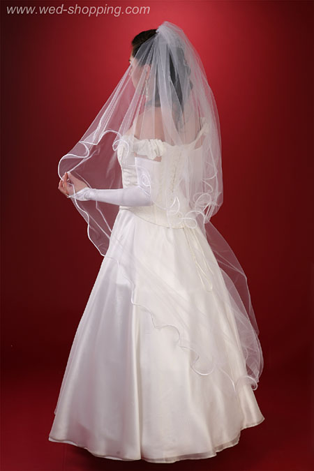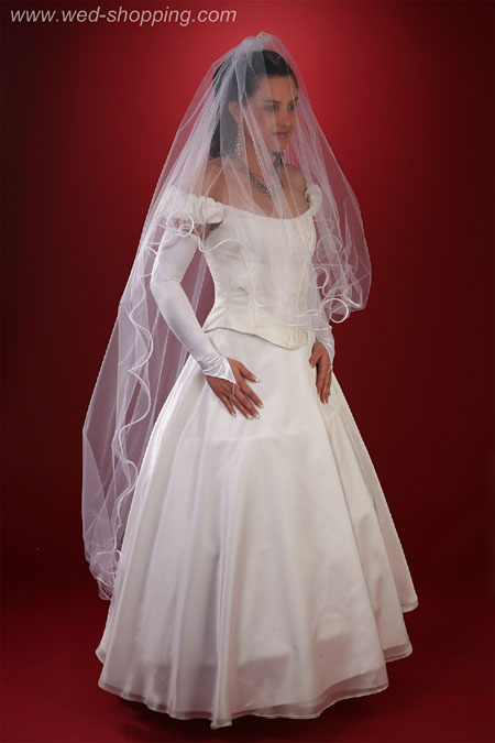 Tule Sluier afgewerkt met een satijnen band met dunne opdruk aan de binnenkant - dit geeft een draaiend, wentelend effectBruidssluier 160 cm lang 200 cm breed leverbaar in wit en ivoor Hoge kwaliteit. Gemaakt in de EU. Levering in circa 10 werkdagen. Vraag om een snellere levering. Lange bruidssluier - 160 cm