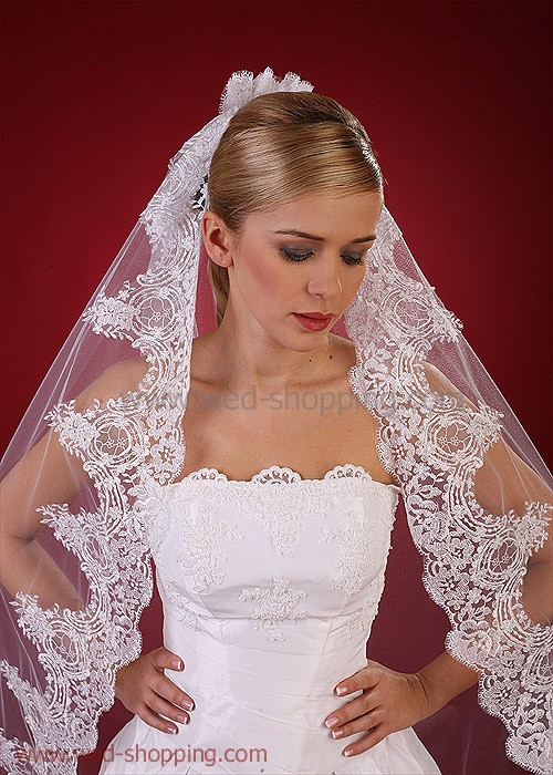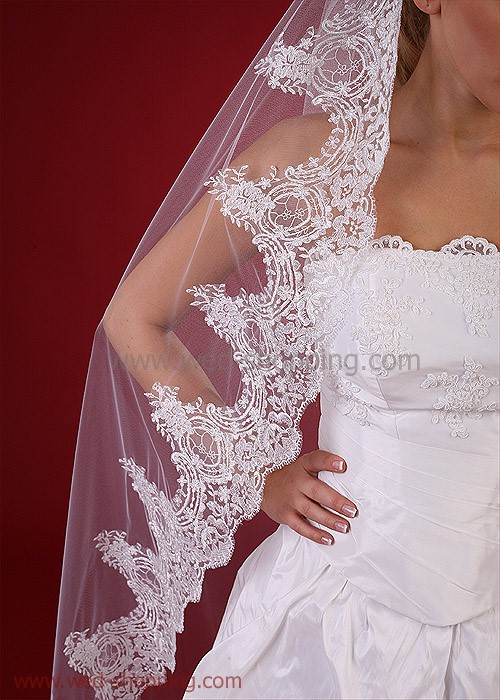 Lange sluier met een brede kant (zilver) 170 cm cm lang disponibel in wit en ivoor Hoge kwaliteit. Gemaakt in de EU. Leveringstijd is circa 10 werkdagen. Vraag om een snellere levering.