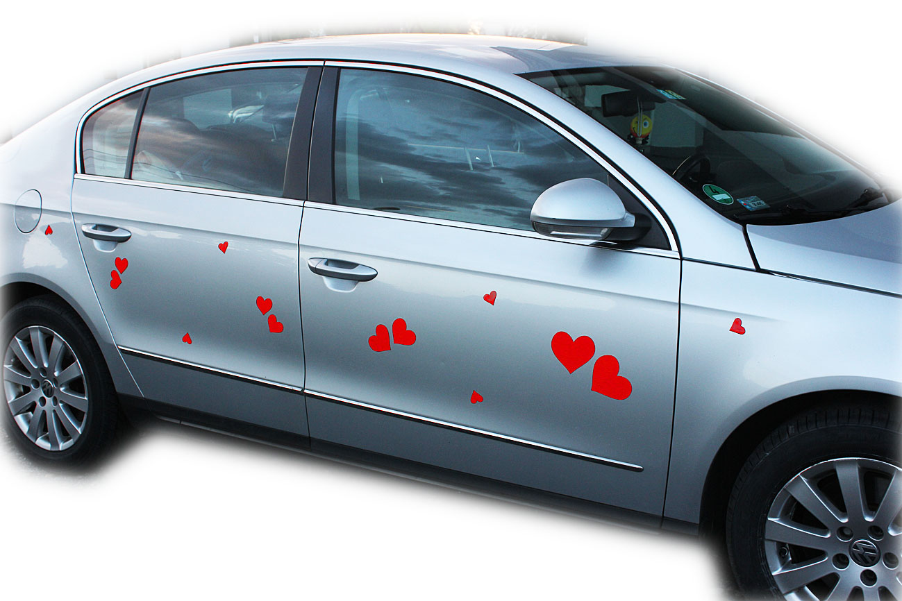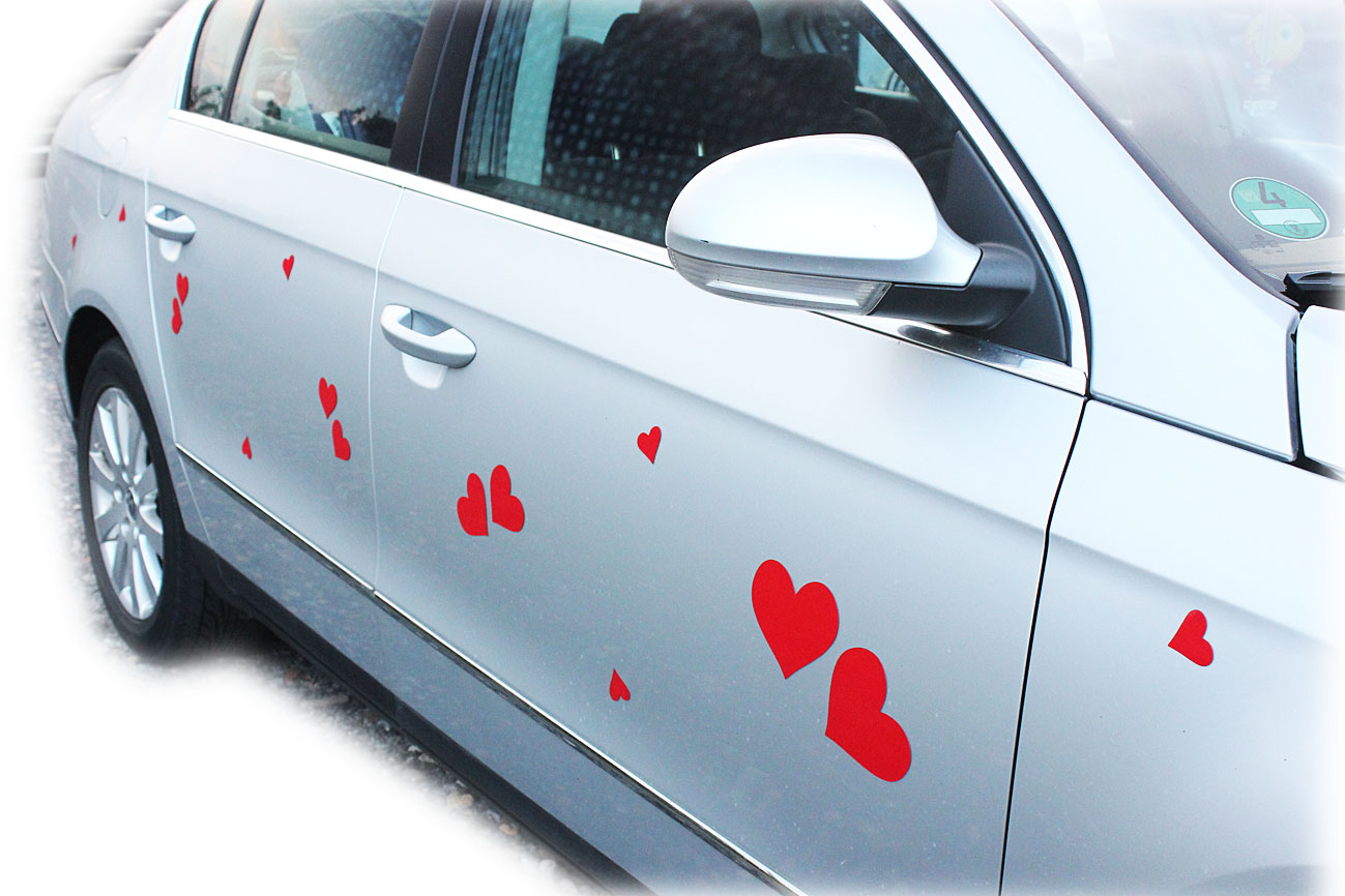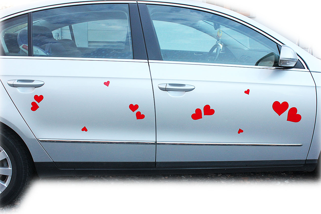 De set bevat: - 2 grote harten (115 x 105 mm) - 2 harten (80 x 72 mm) - 4 harten (60 x 53 mm) - 7 kleinste harten (38 x 35 mm) ongeacht het weerbericht herbruikbare residu-vrije verwijdering Eenvoudige installatie Hoge kwaliteit. Gemaakt in de EU. Levering in circa 10 werkdagen. Vraag om een snellere levering. Magneet hartjes voor bruidsauto