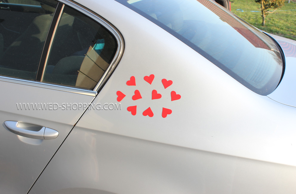 Magneet hartjes voor trouwauto rood 10 hartjes 38mm x 35mm x 0,8mm Decoratie veilig voor autolak Hoge kwaliteit. Gemaakt in de EU. Levering in circa 10 werkdagen. Vraag om een snellere levering. Magneet hartjes voor trouwauto rood