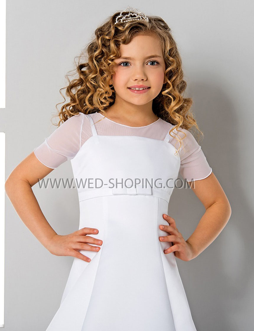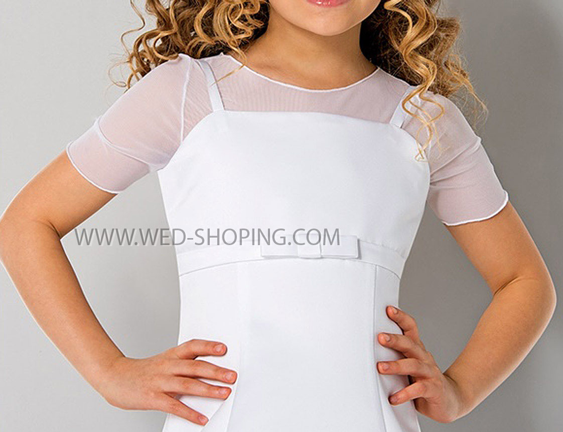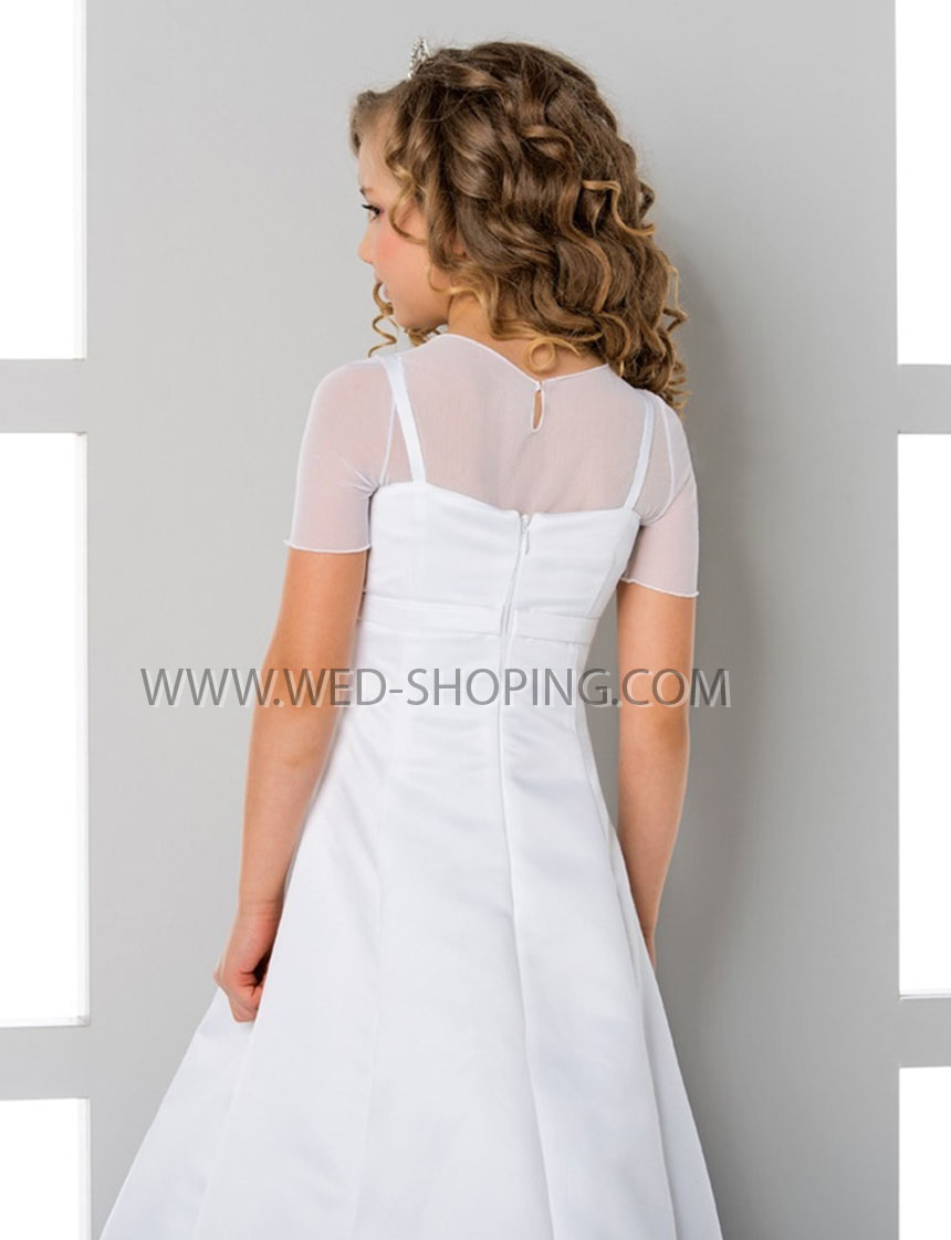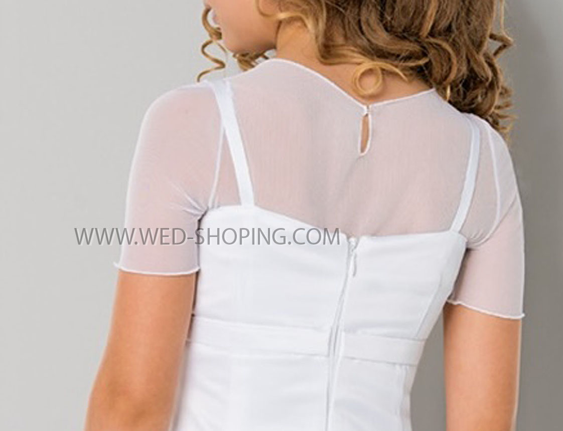 Boléro veste avec manches courtes Matière : Stretch tulle. Disponible en blanc et ivoire Taille :128/134/140 et 146/152/158 Haute Qualité Fabriqué en EU