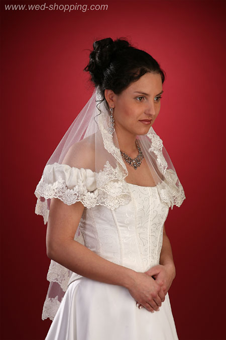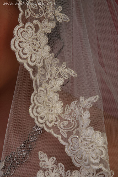 Sluier afgewerkt met geborduurd chiffon band Laag: 80 cm lang 140 cm breed disponibel in Crème (ivoor) + antiek goud Hoge kwaliteit. Gemaakt in de EU. Levering in circa 10 werkdagen. Vraag om een snellere levering.