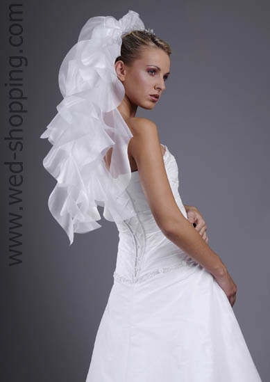 Bruidssluier - glasorganza in de vorm van spiraalvormige linten opsteek: haan 80 cm lang met kam vit, ivoor Hoge kwaliteit. Gemaakt in de EU. Levering in circa 10 werkdagen. Vraag om een snellere levering.
