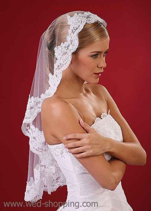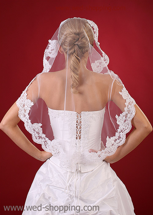 Tule Lengte: 90 cm Enkel-laags Leverbaar in wit en ivoor Hoge kwaliteit. Gemaakt in de EU. Levering in circa 10 werkdagen. Vraag om een snellere levering. Bruidssluier met kant
