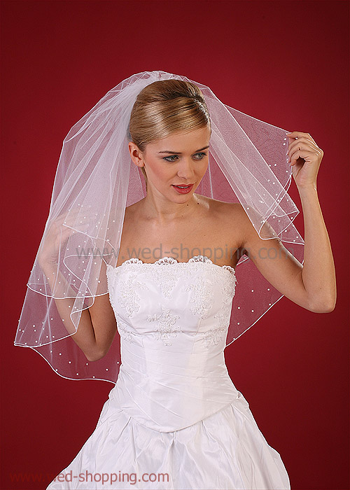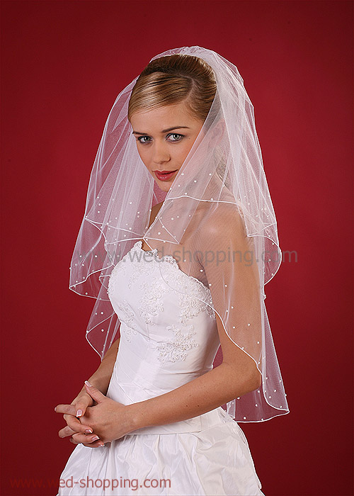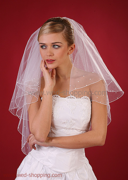 Tule versierd met 200 parels van Swarovski - 80 cm Afgewerkt met een satijnen band disponibel in wit en ivoor Hoge kwaliteit. Gemaakt in de EU. Leveringstijd is circa 10 werkdagen. Vraag om een snellere levering. Bruidssluier met parles van Swarovski - 80 cm