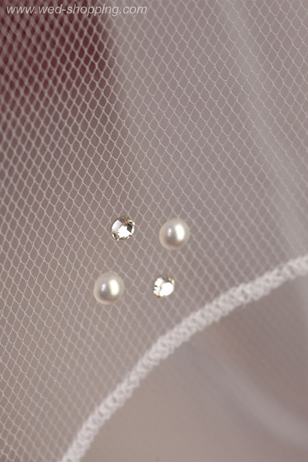 Sluier met kristallen en parels van Swarovski oval circa 64 kristallen en 64 parels Laags: 86/60 cm lang 140 cm breed disponibel in wit en ivoor Hoge kwaliteit. Gemaakt in de EU. Levering in circa 10 werkdagen. Vraag om een snellere levering.