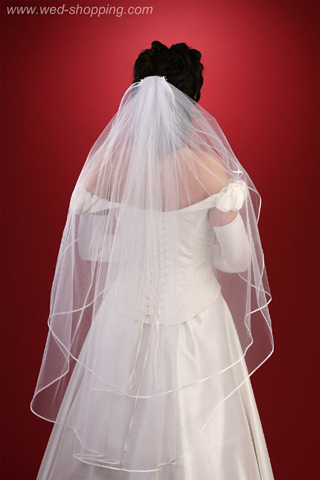 Tule Sluier tweelaags 90 cm Afgewerkt met een satijnen band Laags: 110/90 cm lang 250 cm breed leverbaar in wit en ivoor Hoge kwaliteit. Gemaakt in de EU. Levering in circa 10 werkdagen. Vraag om een snellere levering. Sluier tweelaags 110 cm lang