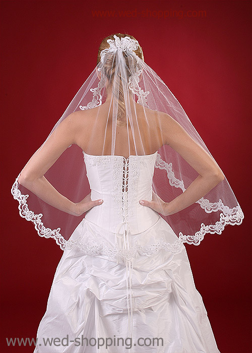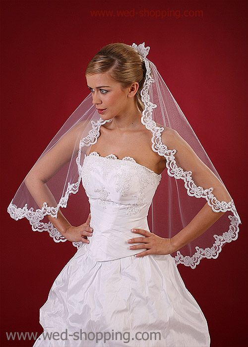 Spaanse Bruidssluier met kant Lengte: 80 cm Leverbaar in wit en ivoor Hoge kwaliteit. Gemaakt in de EU. Levering in circa 10 werkdagen. Vraag om een snellere levering.